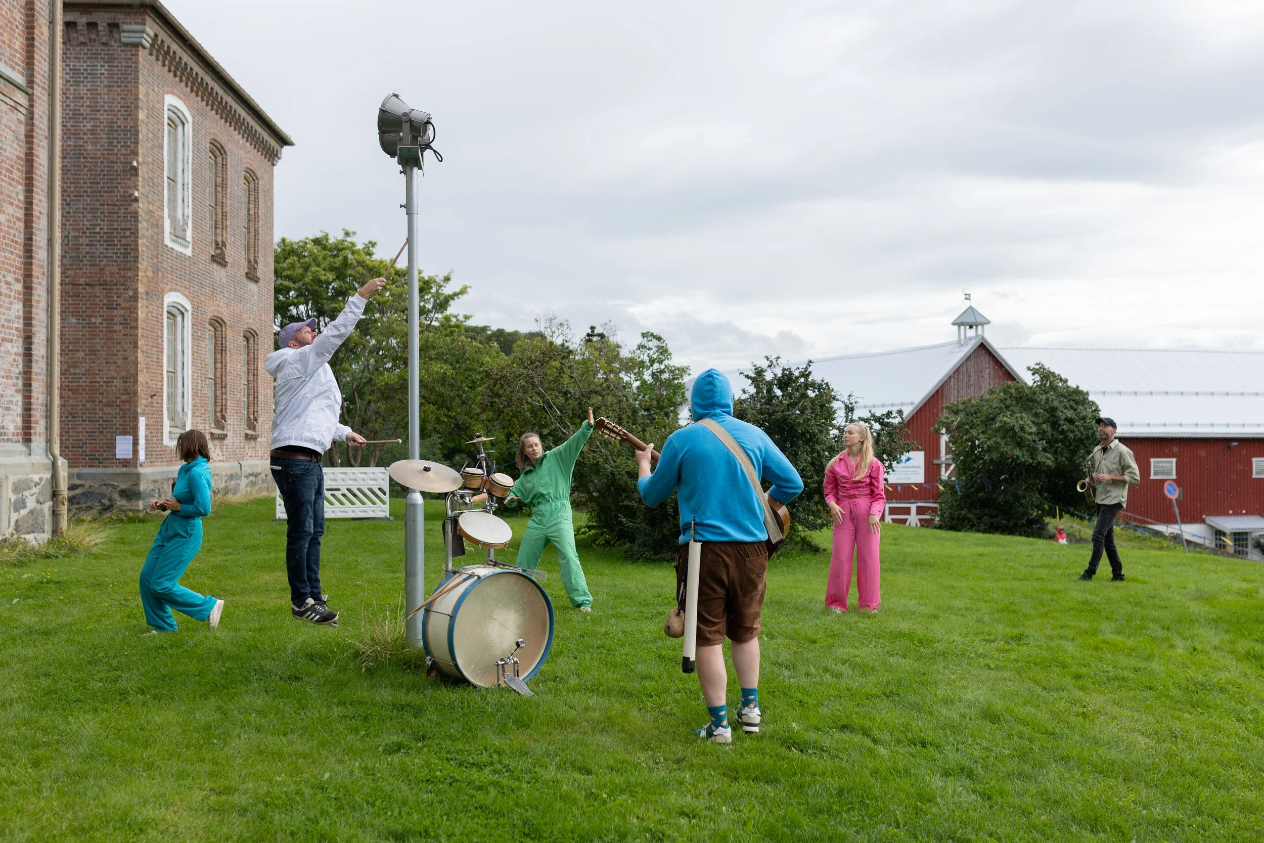 Kunstfest Rotvoll 2023. Eirik Hegdal, Are Lothe Kolbeinsen, Martin Smidt and dance artists Anna Thu Schmidt, Karoline Ellingsen Wheeler, Andrea Winsnes