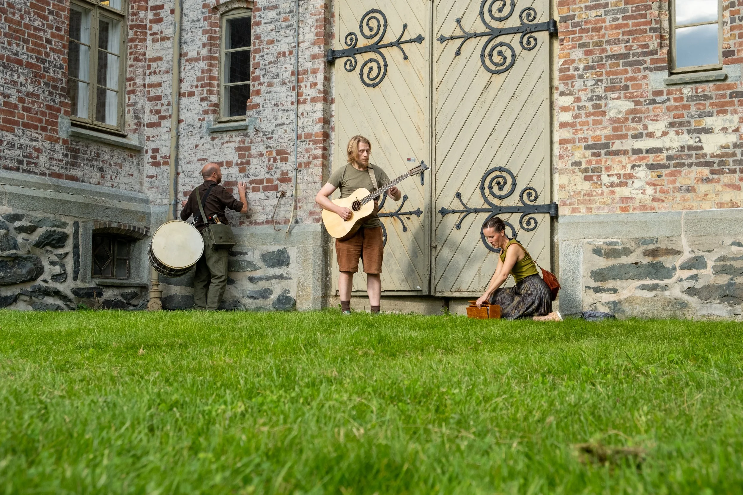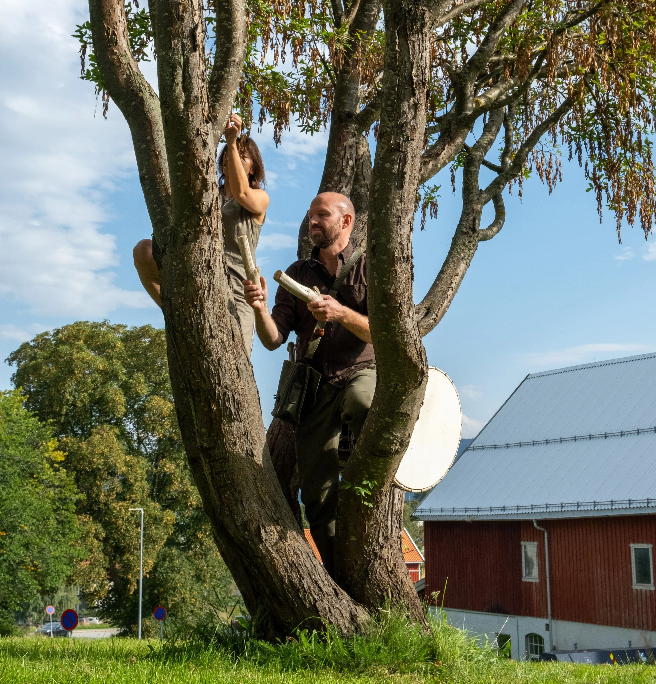 “Gjennom skogen mot fjæra”. Performance @Rotvoll Kusntnerkollektiv 2024. Sissel Vera Pettersen, Are Lothe Kolbeinsen, Martin Smidt, and dance artists Anna Thu Schmidt and Nina Wollny